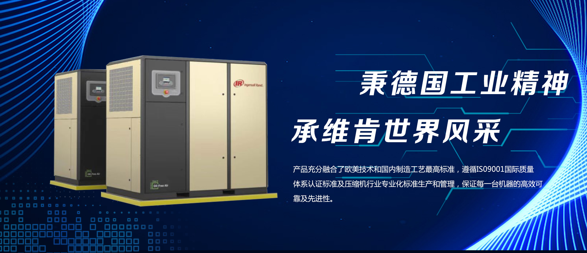 企業完全遵循ISO9001國際質量體系認證標準及壓縮機行業專業化標準生產和管理,保證每一臺機器的高效可靠以及先進性